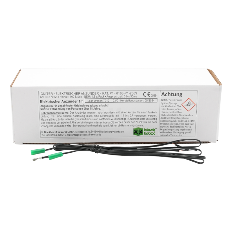 Brückenanzünder mit Plastikhülse, 1 m Drahtlänge, schwarze Isolierung (als Anzündmittel für die Verwendung in Deutschland zugelassen)