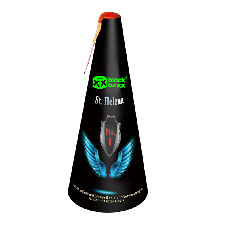 Großer 8" Vulkan in Gold mit blauer Leuchtbasis und Verwandlung zu Silber mit roter Leuchtbasis, raucharm und hoch steigend